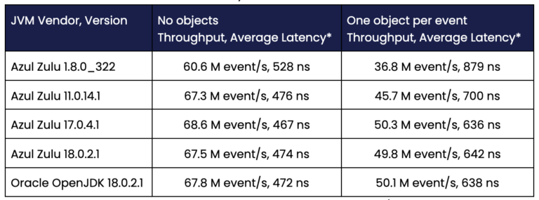 基准测试可以在两种模式下运行,一种是不分配对象,另一种是分配和初始化任何对象,这使我们能够测量这带来的差异。每个事件都被建模为异步 RPC 调用,以使测试、开发和维护更容易。
