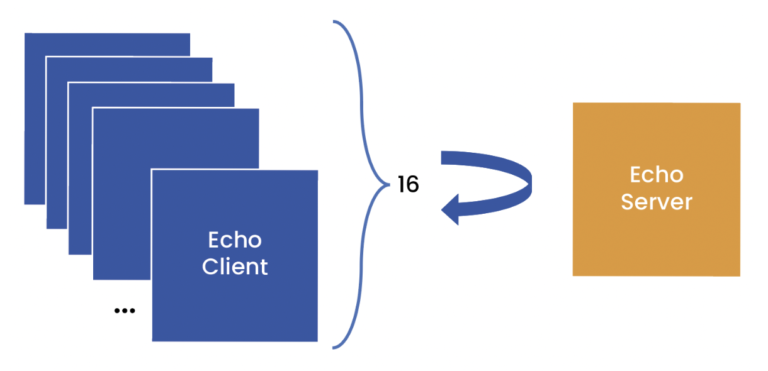 在这个基准测试中,16 个客户端连接到一个简单的微服务,该微服务接收每个事件并将其再次发送回来。